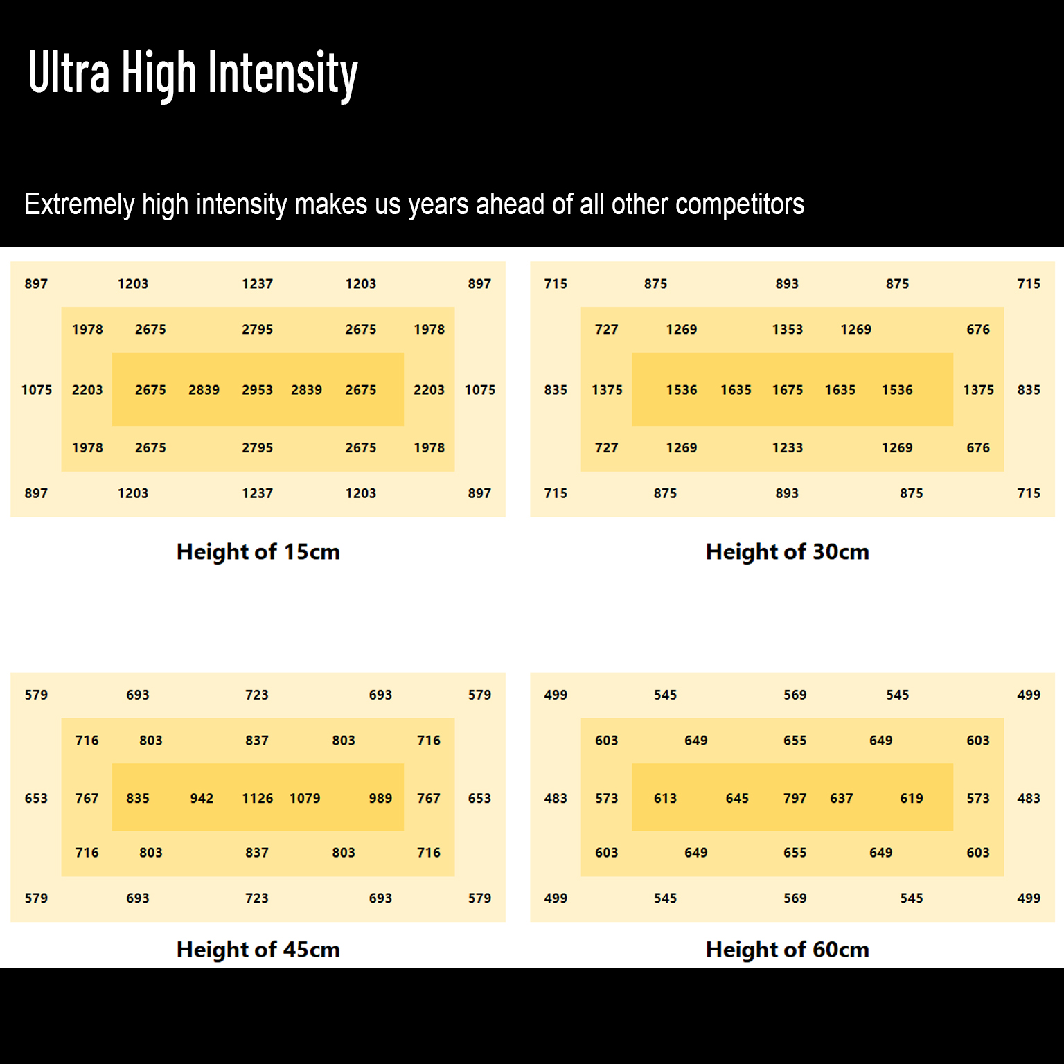 Ausgestattet mit der patentierten quadratischen Superlinse erzeugt es eine außergewöhnlich hohe Lichtintensität – bis zu 40–50 % höher als bei herkömmlichen Modellen mit gleicher Leistungsaufnahme. Das sorgt für ein deutlich schnelleres Pflanzenwachstum und garantiert erheblich höhere Erträge!